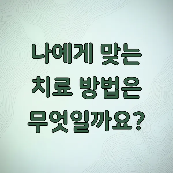환자 개개인의 특성에 맞춰 맞춤형으로 진행되니, 전문가와 상담하여 가장 적합한 길을 찾는 것이 중요하답니다.