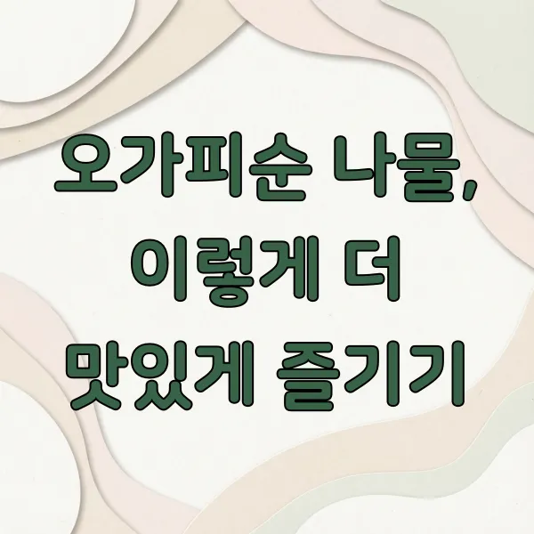 가끔은 조금 색다른 맛을 원할 때가 있잖아요. 그럴 땐 식초를 아주 살짝 넣어보세요. 식초의 새콤한 맛이 오가피순의 쌉싸름한 맛과 의외로 잘 어울리면서 입맛을 확 돋워준답니다. 양은 정말 아주 조금만, 거의 느껴질 듯 말 듯하게 넣어주면 나물의 풍미를 해치지 않으면서 특별한 맛을 즐길 수 있어요.
