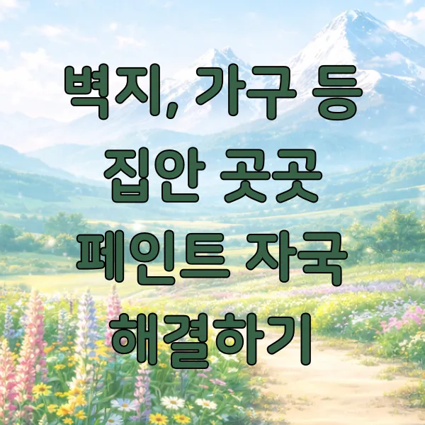 | 페인트 | 벽지 | 물티슈, 중성세제, 페인트 제거제 (소량) | 벽지 종류에 따라 방법 다름, 물기 주의 |