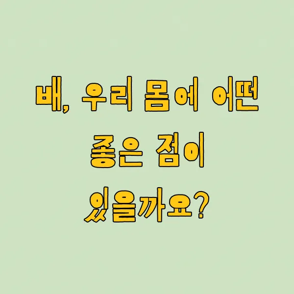 오늘 이 시간에는 배가 우리 몸에 어떤 놀라운 변화를 가져다주는지, 맛있는 배를 제대로 즐기면서 건강까지 챙길 수 있도록 자세히 알려드릴게요!